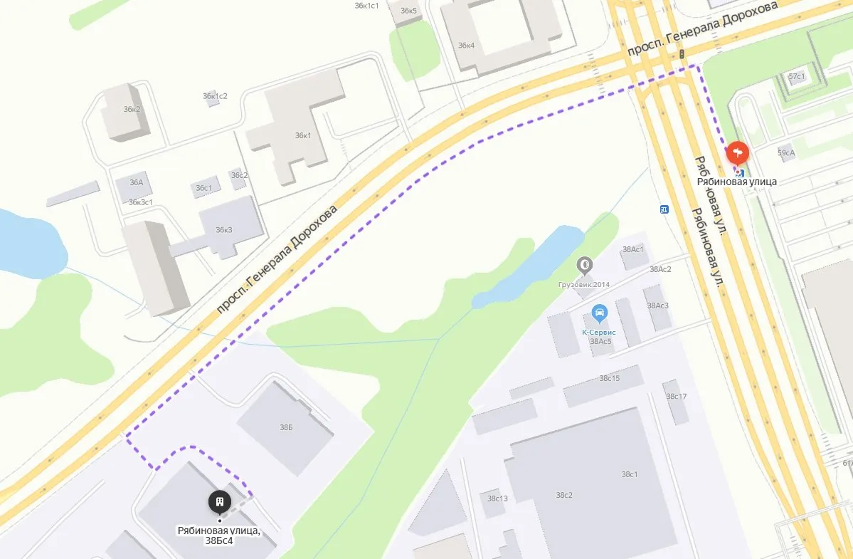 Далее на автобусе от остановки "ст. м. Озерная" двигаетесь до остановки "пр. Генерала Дорохова" . Время на автобусе ≈ 8 мин. (4 остановки).